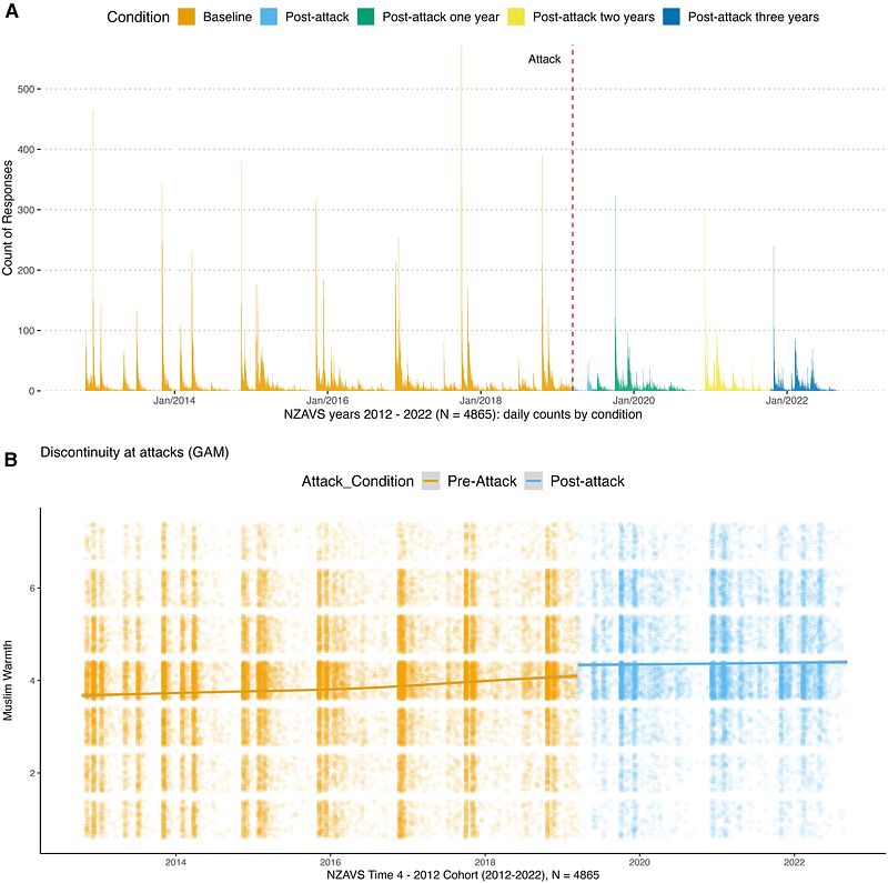 Bulbulia, J. A., Afzali, M. U., Yogeeswaran, K., & Sibley, C. G. (2023). Long-term causal effects of far-right terrorism in New Zealand. PNAS Nexus, 2(8). https://doi.org/10.1093/pnasnexus/pgad242